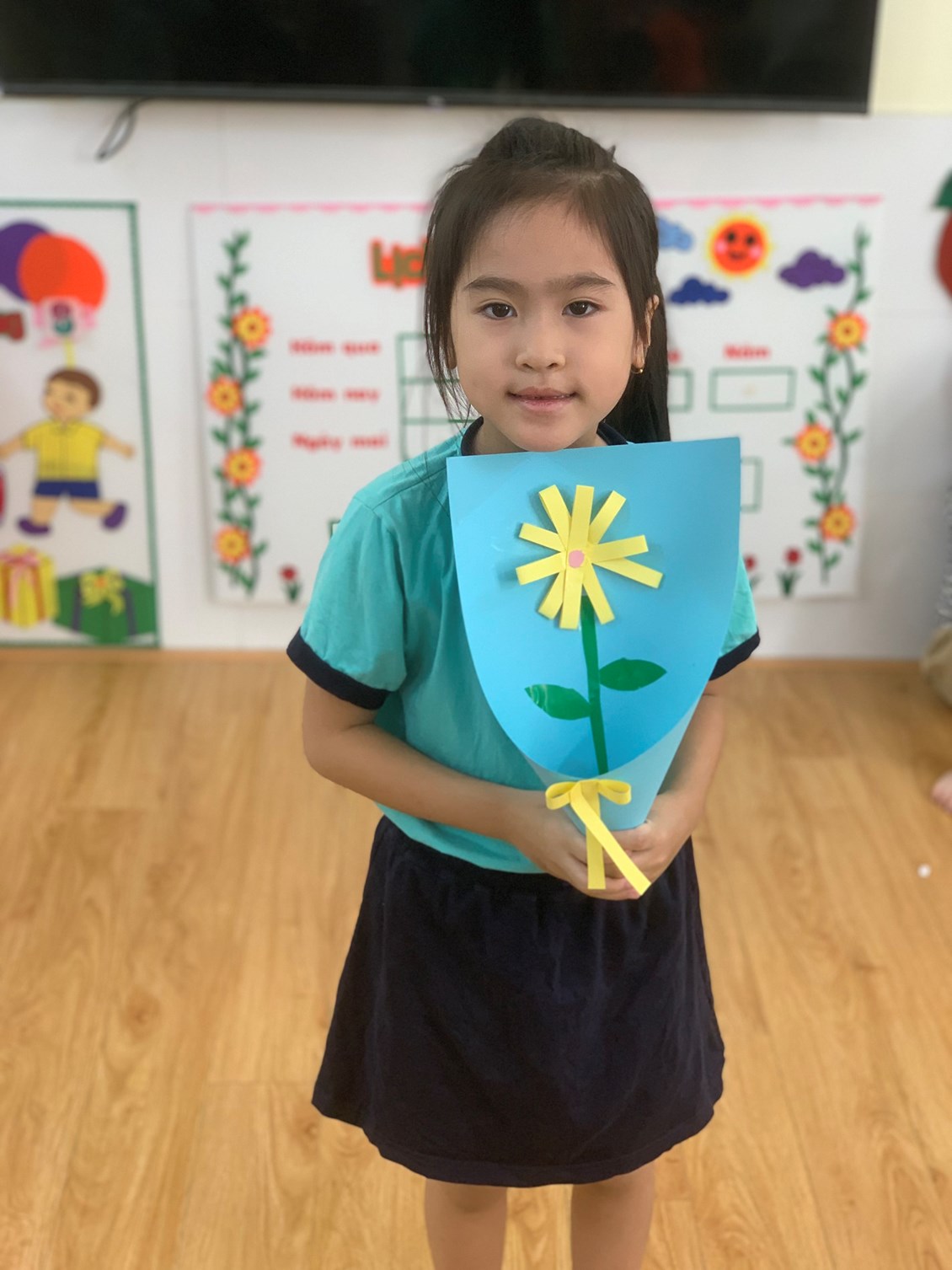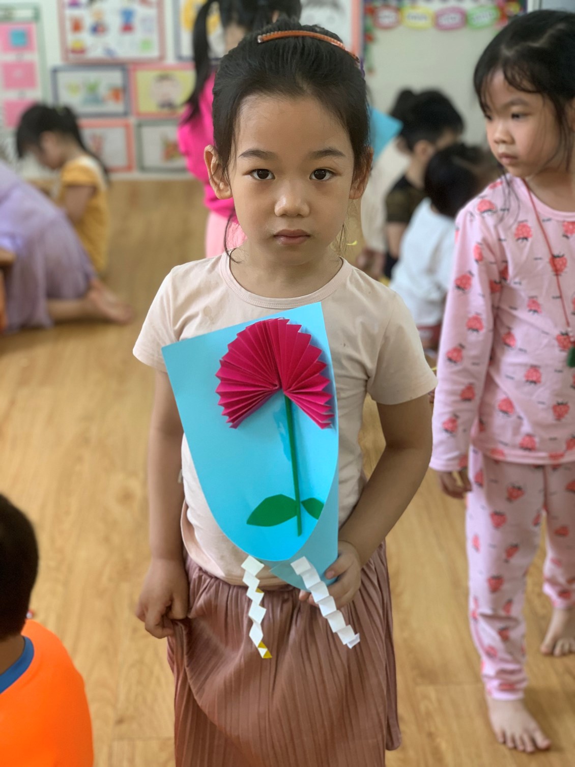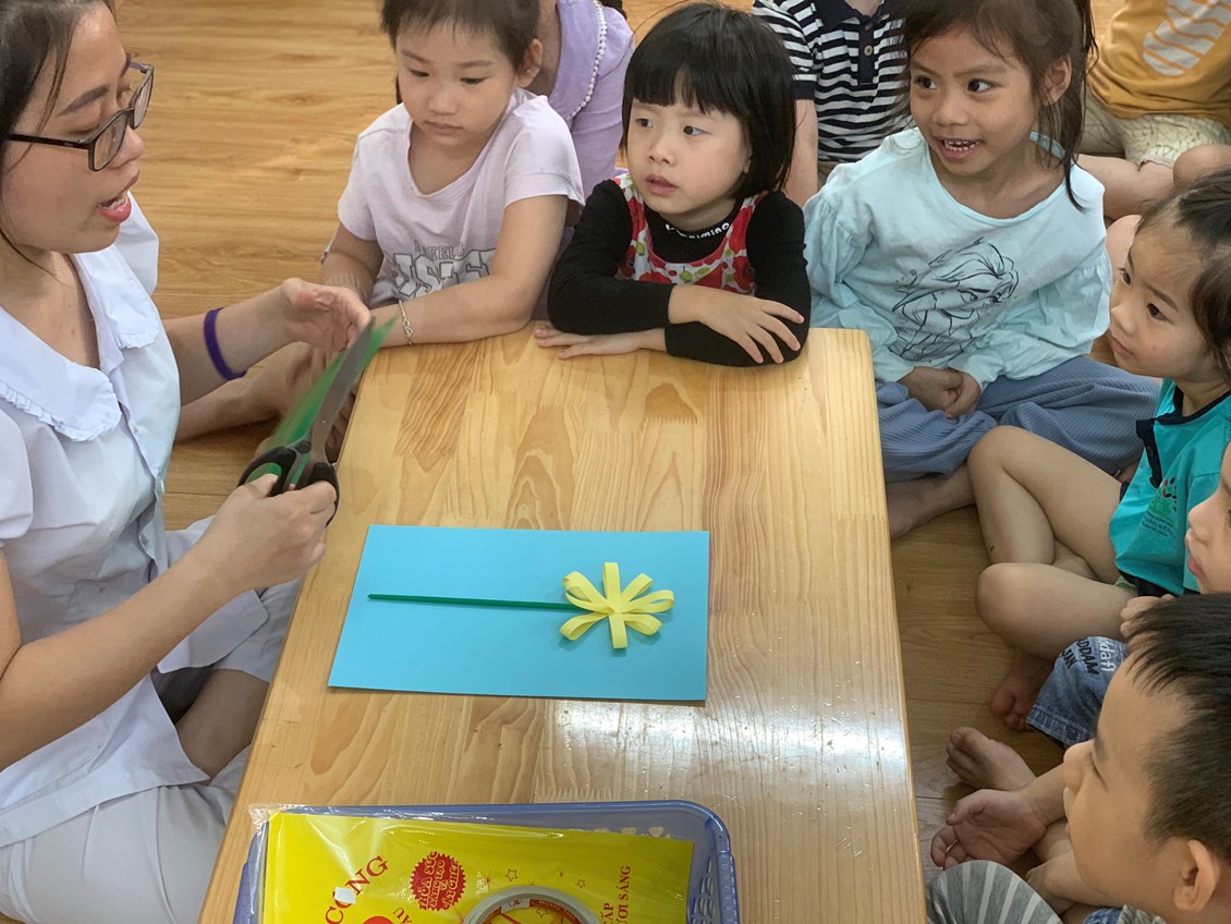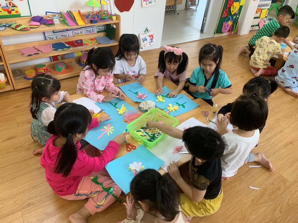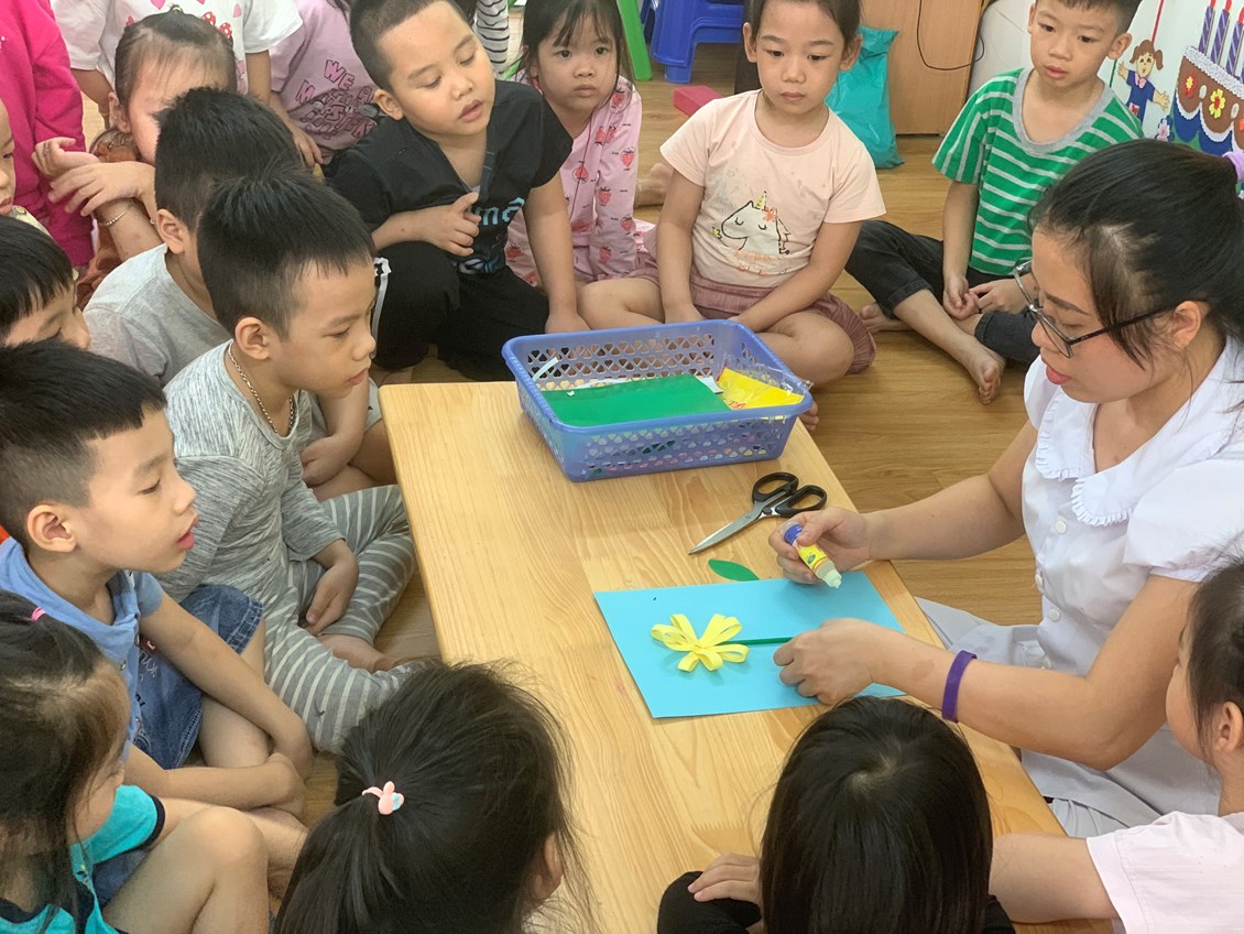 Để trẻ được phát triển những cảm xúc tích cực đầu tiên rõ ràng nhất khi tiếp xúc trực tiếp với cái đẹp, đặc biệt trong nghệ thuật tạo hình. Các bạn nhỏ Team 5A1 hôm nay sẽ thể hiện tình yêu bà, mẹ và các cô qua hoạt động tạo hình cắt dán hoa tặng bà, mẹ, cô nhân ngày 20/10. Bây giờ các bạn cùng chúng tớ cắt dán hoa nhé.