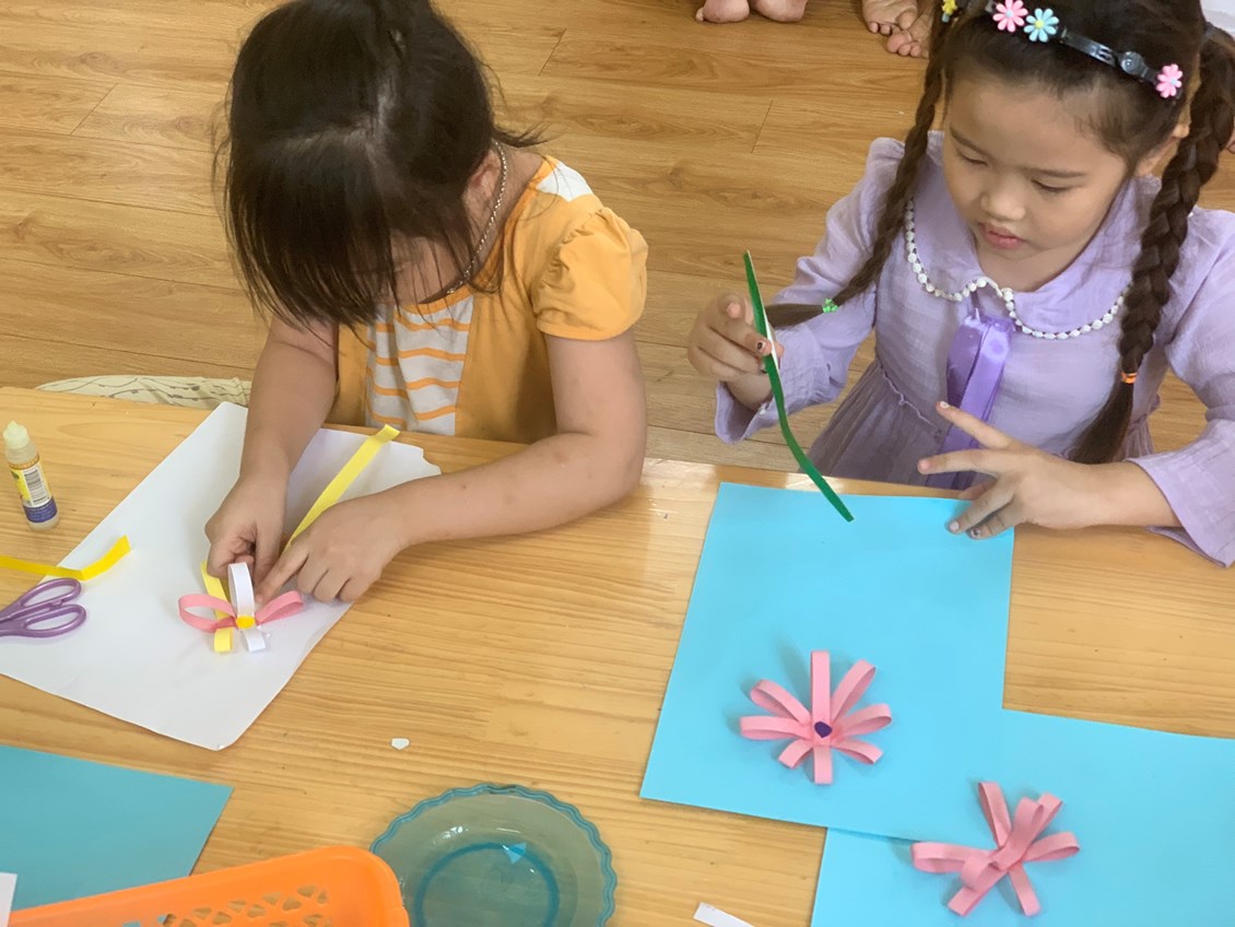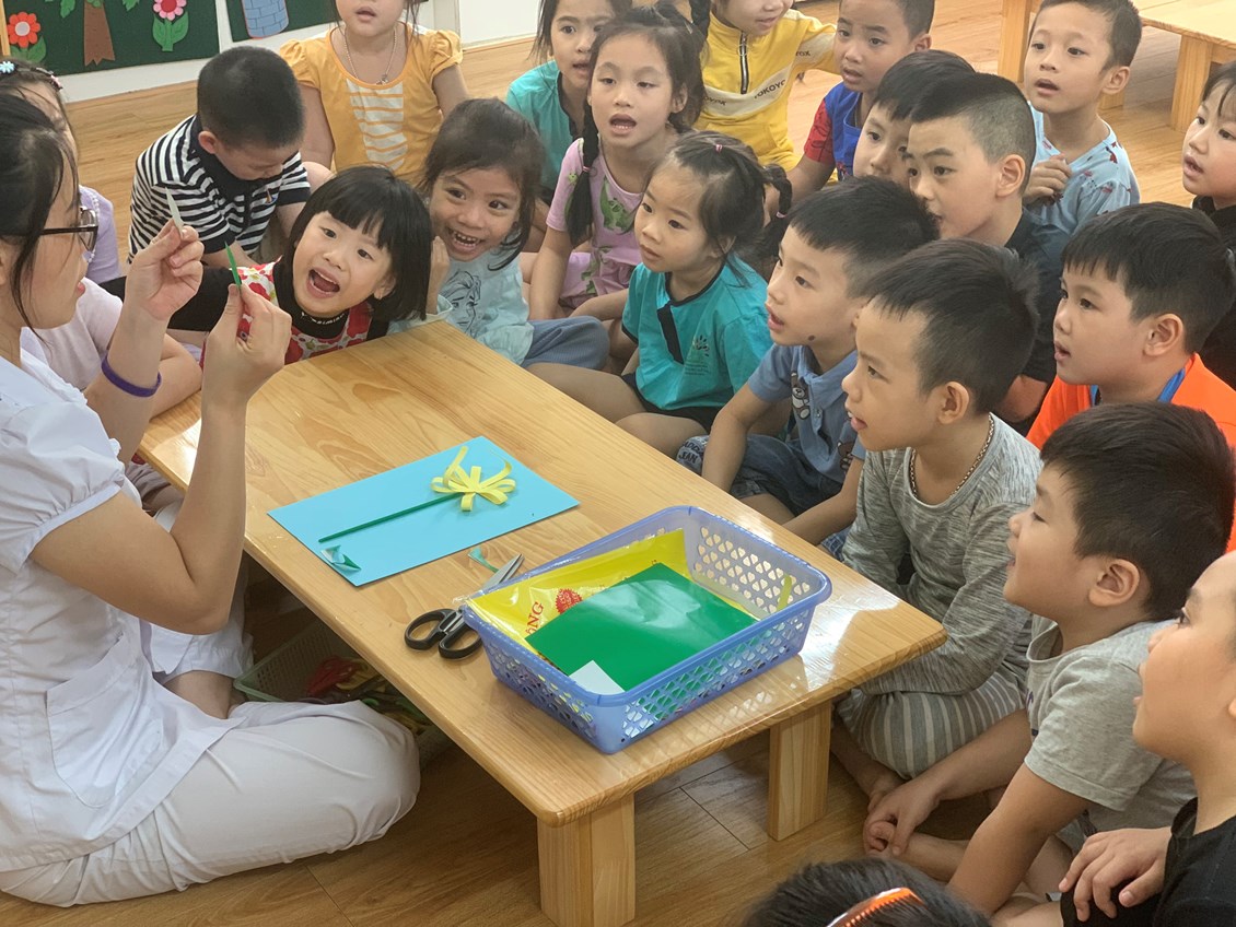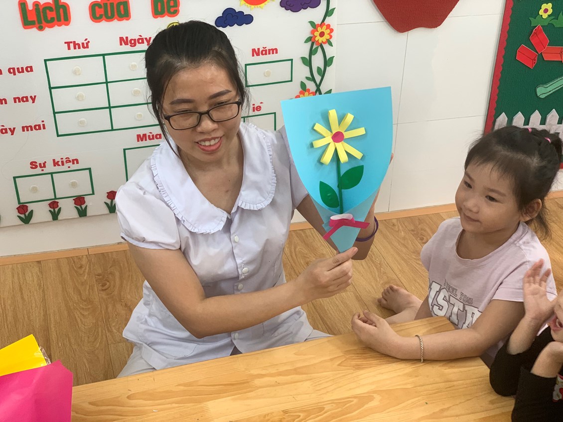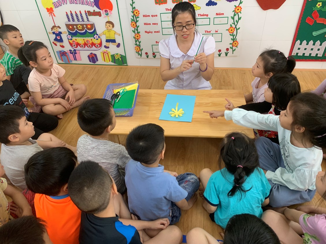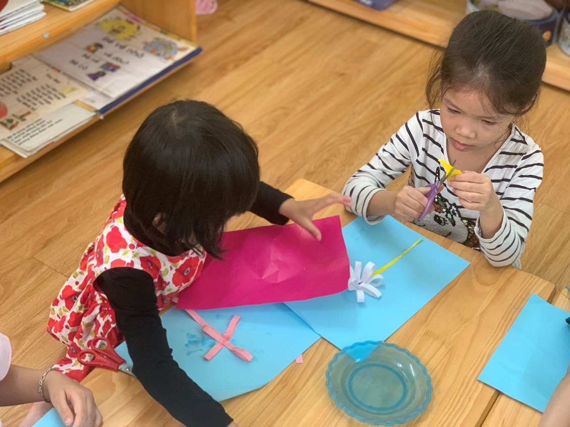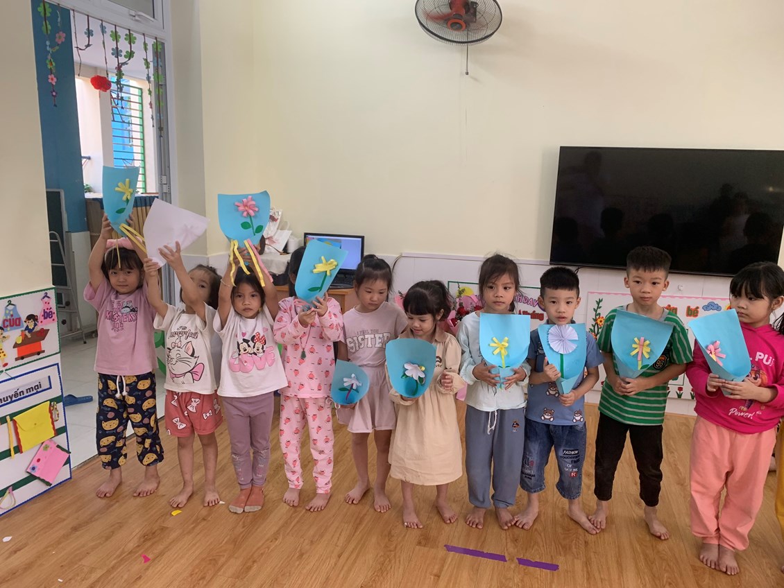 Để trẻ được phát triển những cảm xúc tích cực đầu tiên rõ ràng nhất khi tiếp xúc trực tiếp với cái đẹp, đặc biệt trong nghệ thuật tạo hình. Các bạn nhỏ Team 5A1 hôm nay sẽ thể hiện tình yêu bà, mẹ và các cô qua hoạt động tạo hình cắt dán hoa tặng bà, mẹ, cô nhân ngày 20/10. Bây giờ các bạn cùng chúng tớ cắt dán hoa nhé.