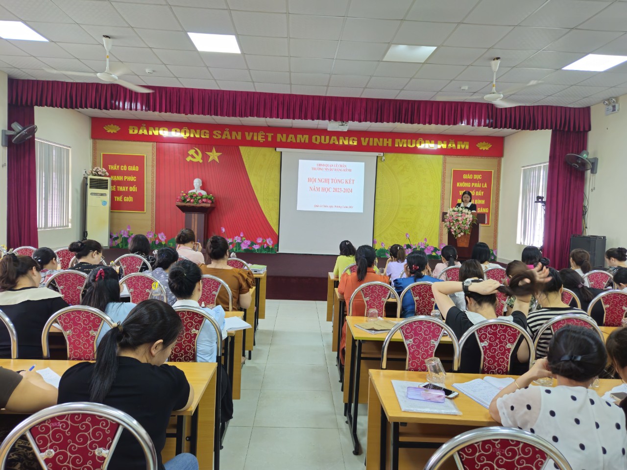Tại Hội nghị Bí thư chi bộ, Hiệu trưởng nhà trường Nguyễn Thị Len báo cáo tóm tắt thành tích đạt được trong năm học 2023-2024, trong đó nhấn mạnh những kết quả, thành tích đã đạt được, tuyên dương các cá nhân, tập thể lớp đạt thành tích cao trong công tác chăm sóc, nuôi dưỡng và giáo dục trẻ.