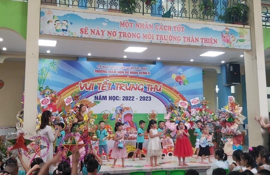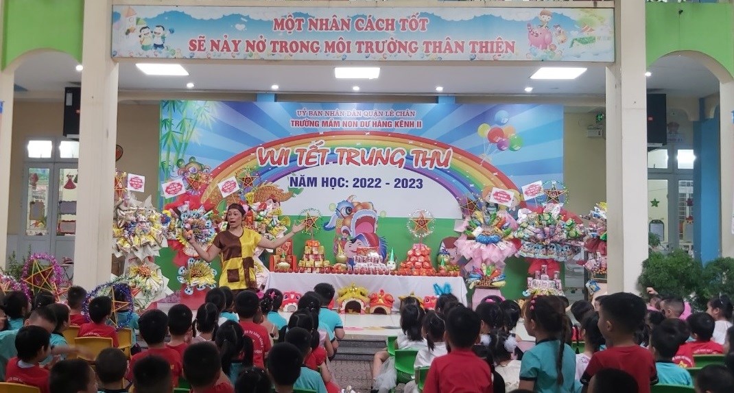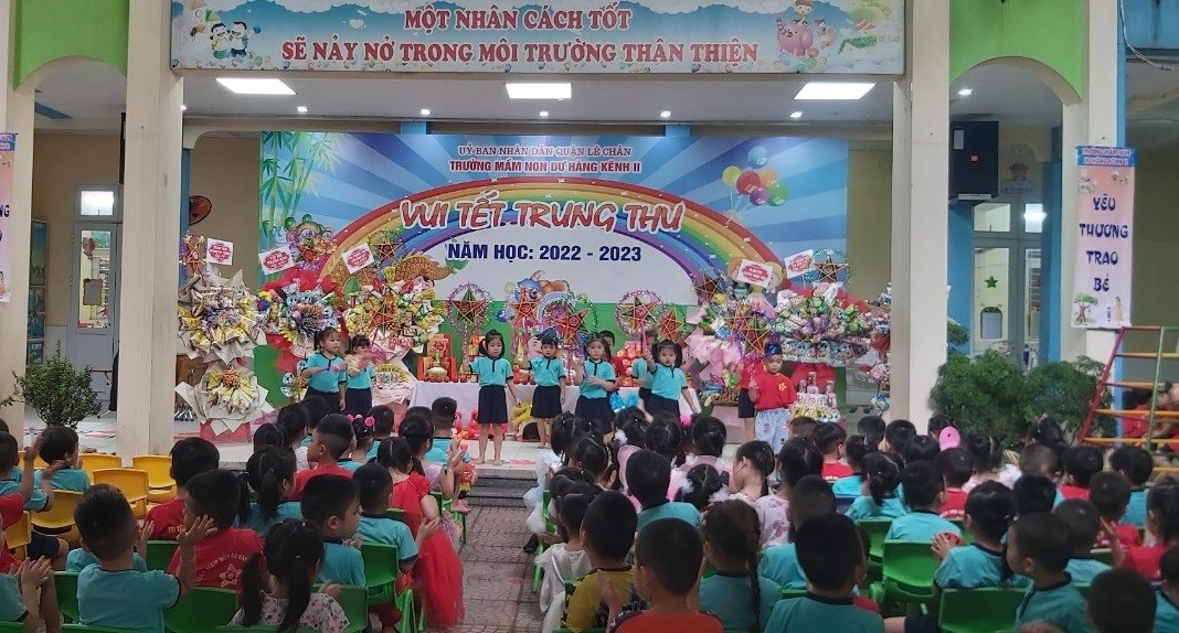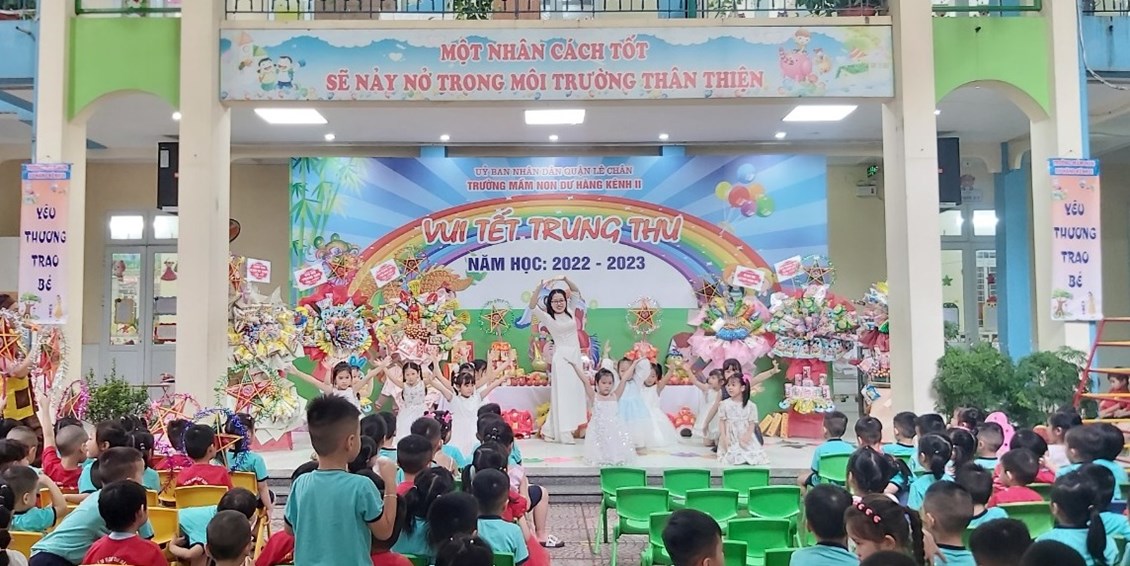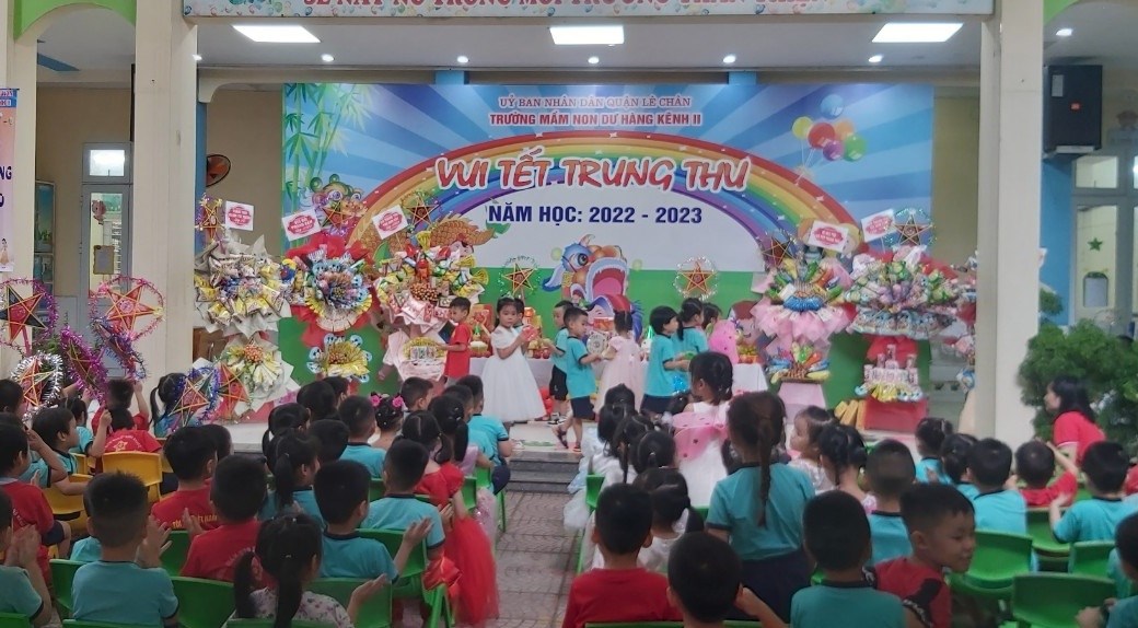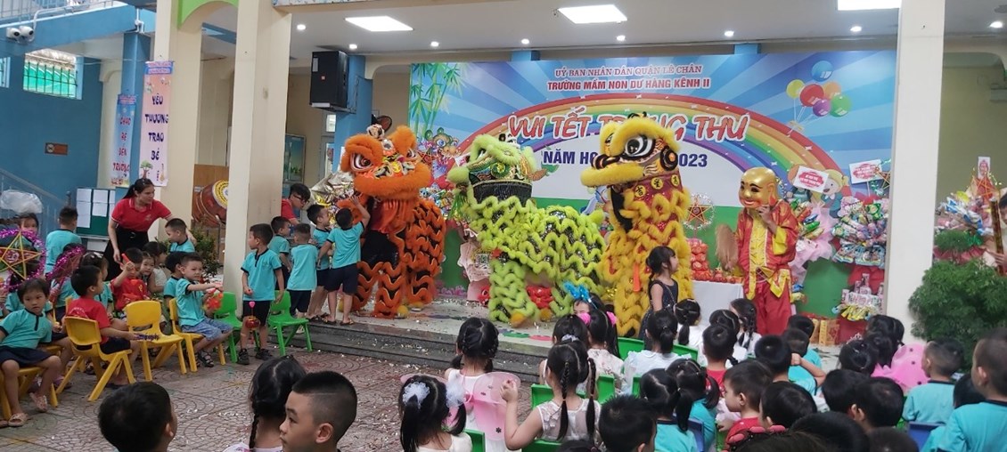 Vậy là chúng ta lại được đón một cái Tết Trung thu thật vui vẻ và đầy ý nghĩa, trong không khí Trung thu đã ngập tràn trên mọi nẻo đường, trên mọi con phố, trong mọi nhà, cùng với sự hân hoan của tuổi thơ. Hôm nay hòa chung với bầu không khí tưng bừng phấn khởi đó, trường Mầm non Dư Hàng Kênh II tổ chức “Tết Trung thu cho các bé” năm học 2022-2023. Trong không khí đầm ấm, vui tươi phấn khởi là dịp để các bé được vui chơi, được tìm hiểu và khám phá về những nét đẹp trong văn hóa đón Tết Trung thu.
